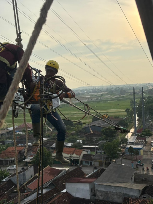 Tension String Method: Reconductoring 150kV (Uprating and Lower sagging with ACFR 315) Central Java, Indonesia